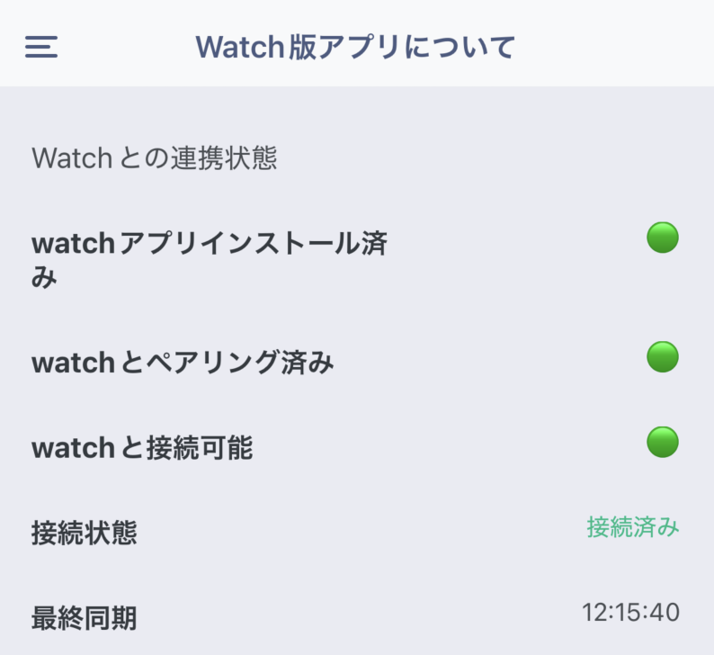 - iPhone 側であみものカウンターアプリを開き、「Watch との連携状態」を再度確認します。